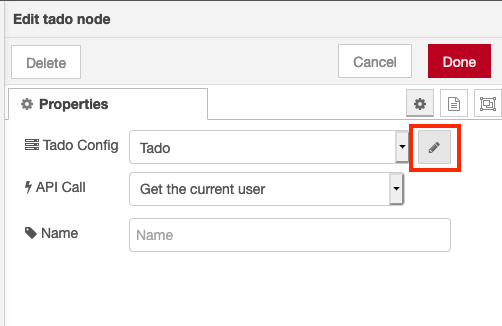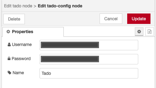 Note that once you have configured the first Tado node, you should configure all the other nodes to use the same credentials. By default, we have provided a global configuration node for Clarify and Tado that you can configure with the correct credentials. You can choose to keep these nodes, rename them, or configure your own.