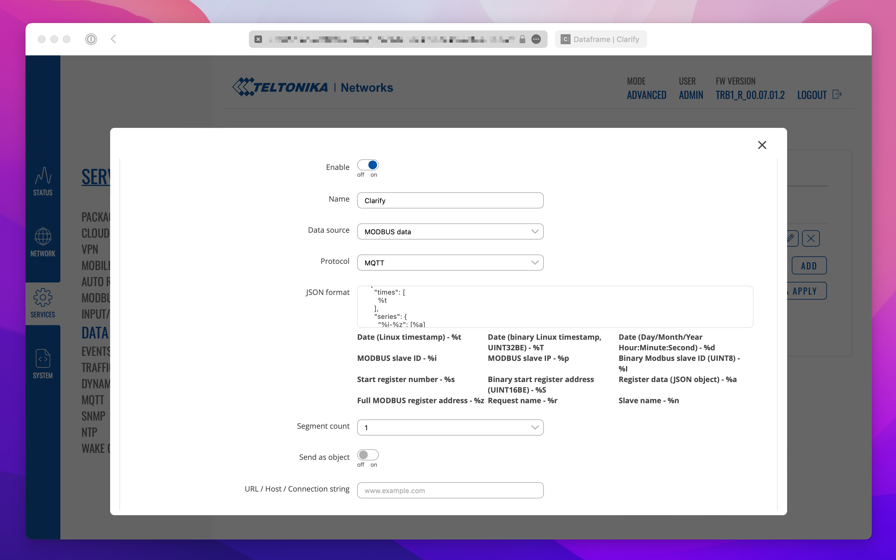 In this guide we're going to show you how to use your Teltonika TRB-XXX device to read data via Modbus TCP and send it to Clarify. By doing so, you will be able to visualize your data and share it with your colleagues.
