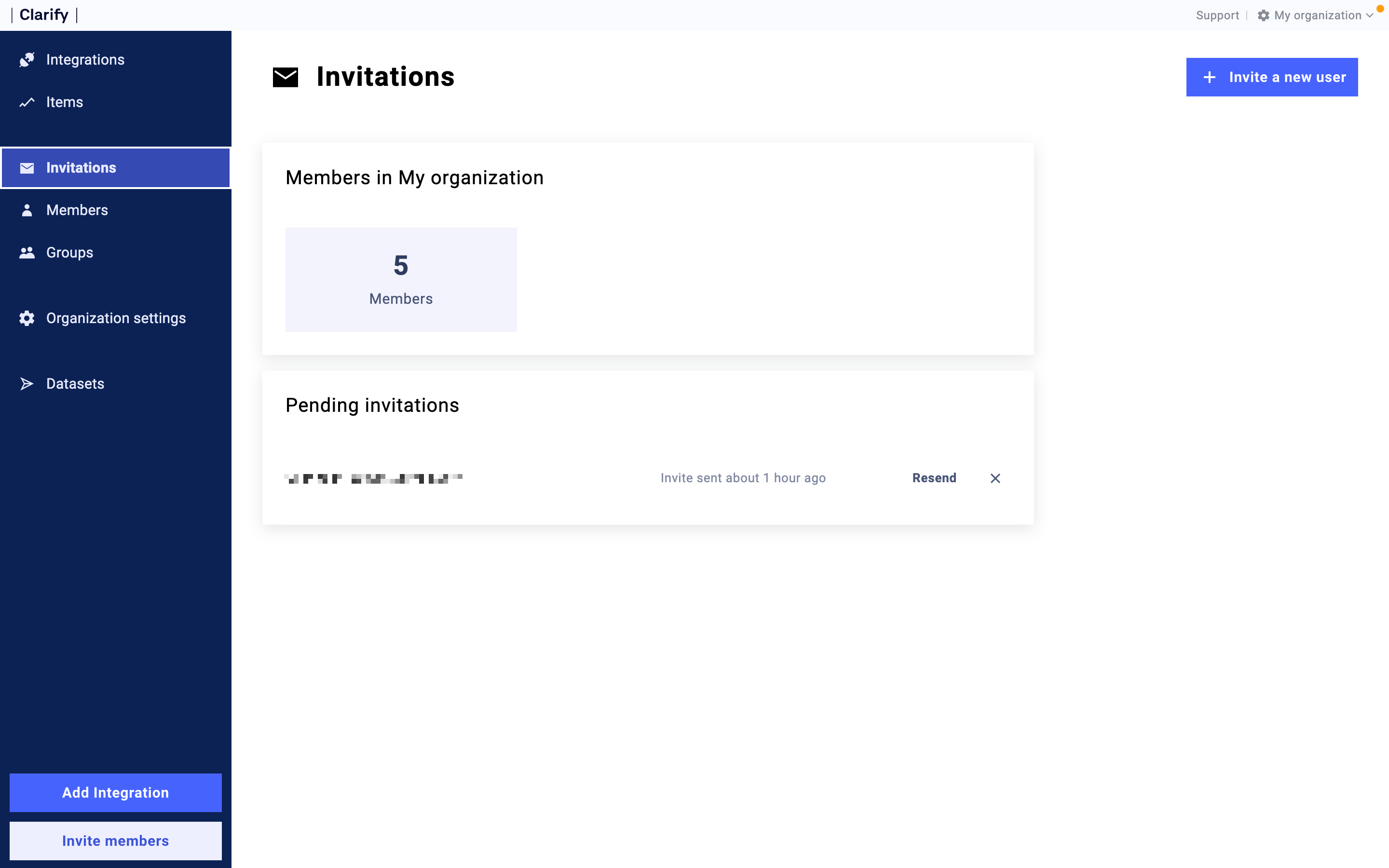 On this pageInvitationsOverviewThe invitations menu shows pending invitations, from here you can resend invitations or cancel them. Invite new users to your organization