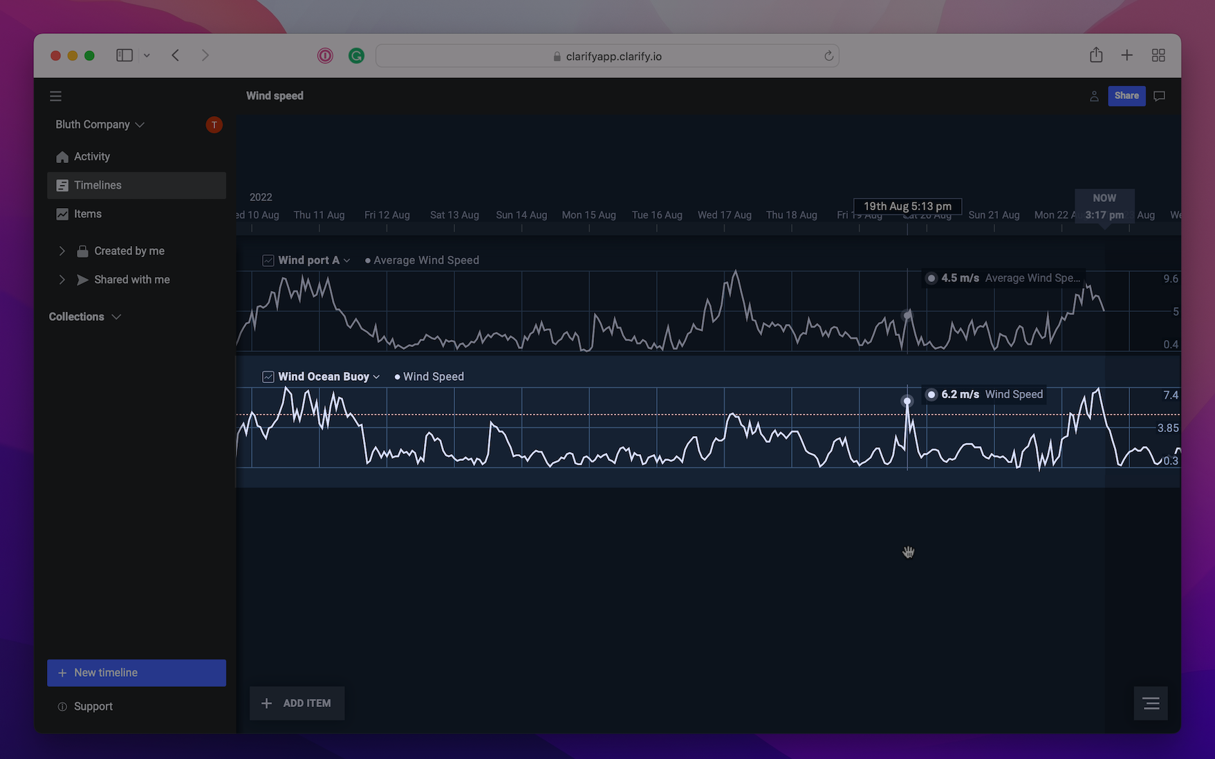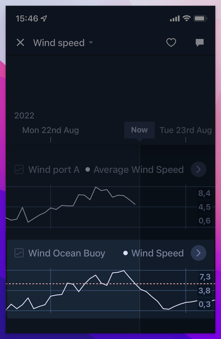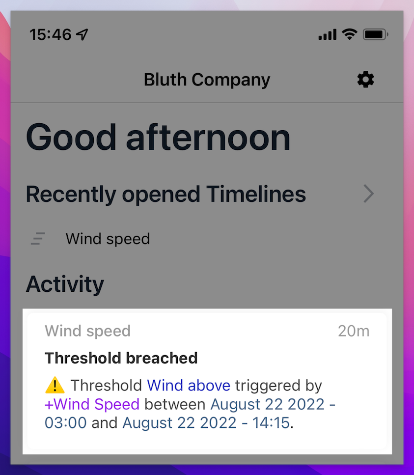 For timelines where you wish to be notified when items go above or below expected values you can set one or multiple thresholds. When the item or items in that visualization breach the threshold, all members of that timeline will get a push notification and the breach will be listed in the activity list.